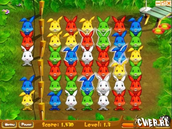 Вот уже несколько лет подряд все зайцы ежегодно собираются в Прыгающей Долине. На этот раз приглашение есть и у Вас! Объедините их в группы по три и более, так чтобы они счастливые отправились домой!