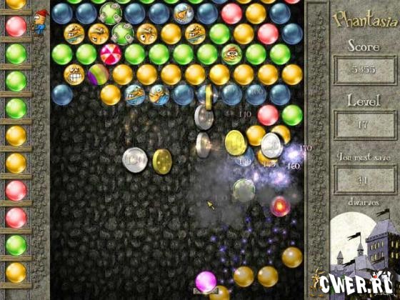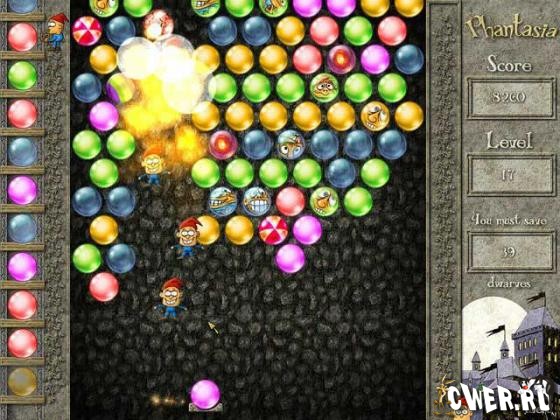 Вам предстоит освободить из заточения всех гномов, взорвав все разноцветные пузырьки, которые мешают им вырваться на свободу.