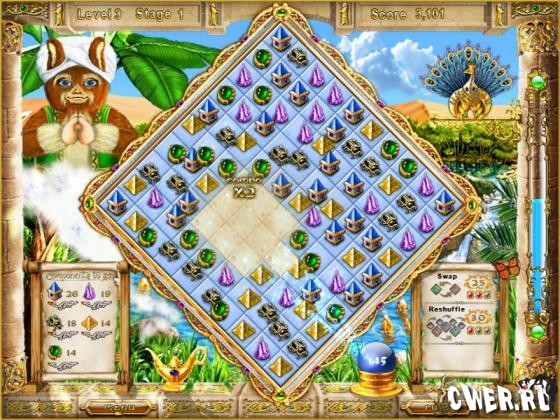 Продолжение замечательного пазла Magic Match. Помогите Мерлину и Гиглзу пересечь пустыни Аркании, исследовать пирамиды и попасть в Город Богов. В игре 3 режима, 50 уровней, 5 бонусных мини-игр и яркое оформление с атмосферным звуковым сопровождением.