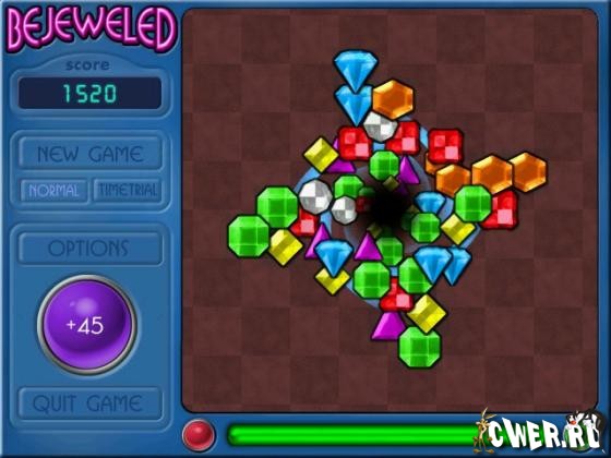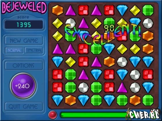 Брюлики - красивая логическая игра, смысл которой заключается в нахождении троек одинаковых бриллиантиков. Найденные и выбранные тройки исчезают, а на их место опускаются новые брюлики.