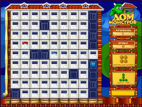 В этой игре от Alawar вам предстоит руководить веселыми разноцветными монстриками. Все они живут в одном домике. Однако, по весьма непонятной причине, попасть к себе в квартиры поодиночке не могут. Здесь-то и пригодиться ваша помощь - объединяйте монстриков в небольшие группы, после чего они сумеют разойтись по своим комнатам. В Доме монстров существуют 2 режима игры.