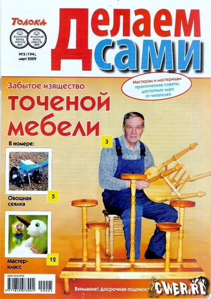 «ДЕЛАЕМ САМИ» - Журнал о мировом опыте обустройства дома, создания интерьера жилища, его ремонте, изготовлении многочисленных полезных предметов интерьера и домашнего обихода. В каждом номере журнала помещаются материалы по изготовлению различной мебели, по столярным технологиям. Читатели журнала познакомятся с народными промыслами разных стран, с изготовлением различных самоделок.
