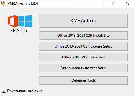 KMSAuto++ - активатор предназначен для беспроблемной и быстрой активации операционных систем Windows 7, 8, 8.1, 10, Server 2008, 2008 R2, 2012, 2012 R2, а также Office 2010, 2013, 2016, 2019. Возможна активация Office 2010 VL на Windows XP.