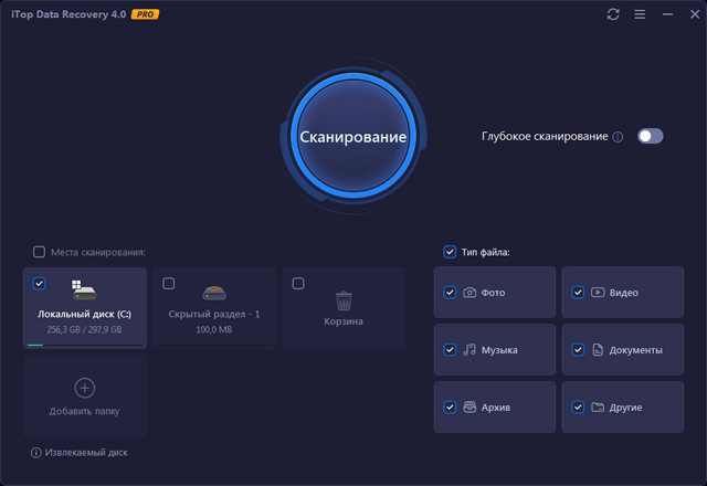 iTop Data Recovery Pro – полезная программа для восстановления удалённых файлов. С её помощью вы сможете найти и восстановить удалённые файлы на всех типах носителей, включая SSD-накопители, жесткие диски, USB-накопители и карты памяти.