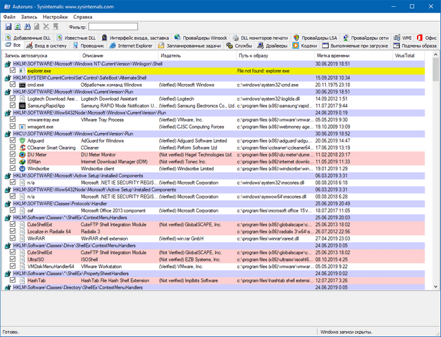AutoRuns - утилита для контроля автозагрузки программ. Она позволяет увидеть, какие программы настроены на запуск в процессе загрузки или входа в систему, причем эти программы отображаются именно в том порядке, в каком система Windows обрабатывает их. Это относится к программам, находящимся в папке автозагрузки или прописанным в разделах реестра Run, RunOnce и других. Autoruns можно настроить на отображение и других расположений, таких как расширения оболочки проводника, панели инструментов, объекты модулей поддержки обозревателя, уведомления Winlogon, автоматически запускаемые службы и т.д. Приложение обладает расширенным функционалом по сравнению со служебной программой MSConfig, входящей в состав Windows Me и XP. Скачай бесплатно на Cwer.ws.