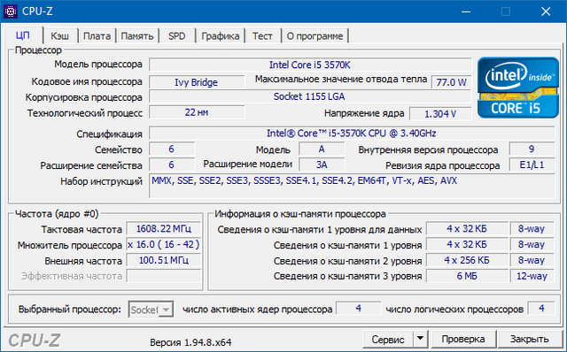 CPU-Z – программа, предоставляющая подробную информацию об установленных в компьютере процессоре, памяти, кэше и материнской плате. Отличается маленьким размером и удобным интерфейсом. Поддерживает практически все типы процессоров и материнских плат. Скачай бесплатно на CWER.ru.