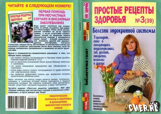 В каждом номере рекомендации врачей и рецепты народной медицины: причины, профилактика, предупреждение и лечение, а также рецепты самооздоровления, самопомощи и письма читателей победивших недуг. Тема номера: наследственные заболевания.