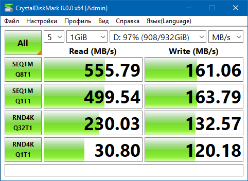 CrystalDiskMark - небольшая бесплатная программа, предназначенная для сравнительного анализа (тестирования) быстродействия жестких дисков компьютера. Позволяет измерить скорость чтения и записи данных.